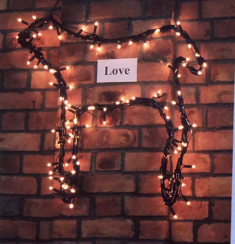 Properties : Five symbols made from Christmas tree lights around the walls.
