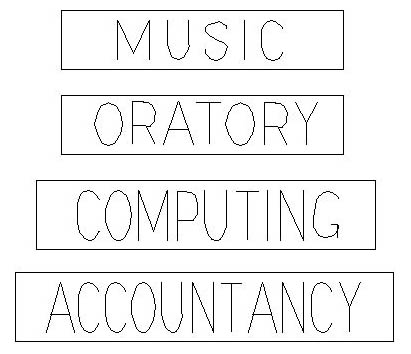 | CLIPBOARD | The top sheet of paper should have the four talents ( Accountancy, Computing, Music, Oratory - or any others you like, but you might have to do a little rewriting if you change them ) written on it in large letters, so that it is as visible as possible when S displays it on his stand. It doesn't matter if not everyone can see it - it's only for the sake of authenticity. |