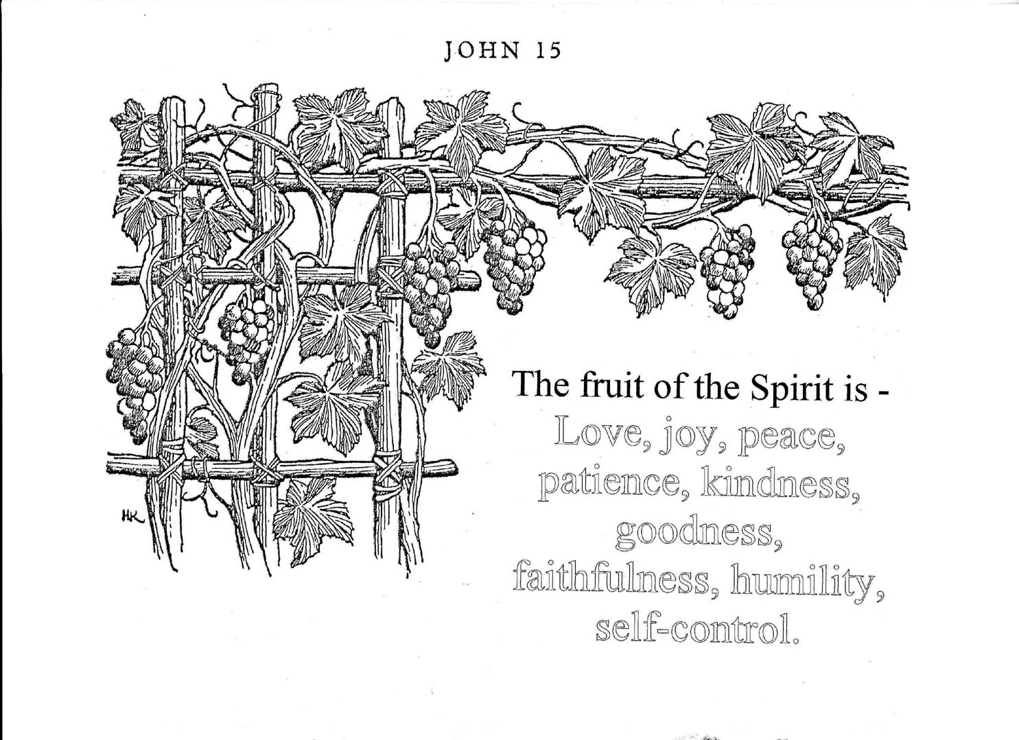 ACTIVITY Something to occupy the children quietly during the sermon. In line with the theme of the service, we gave out a colouring-in page with pictures of a grape vine and a list of the fruit for filling in, and colouring-in pencils.