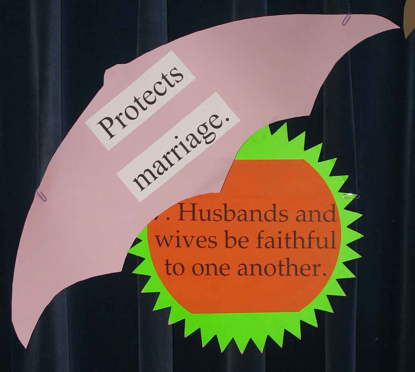 | CURTAIN BEHIND THE ALTAR | - or somewhere conspicuous. Our curtain is convenient; it is large, and visible, and there, and it's easy to fasten things to it. |