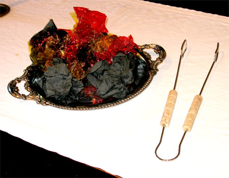 ( We'd presented the Isaiah story before in August 2003, but that was before we invented the "burning coals" described here. We don't remember how we managed, but suspect we left it to the congregation's imaginations. )