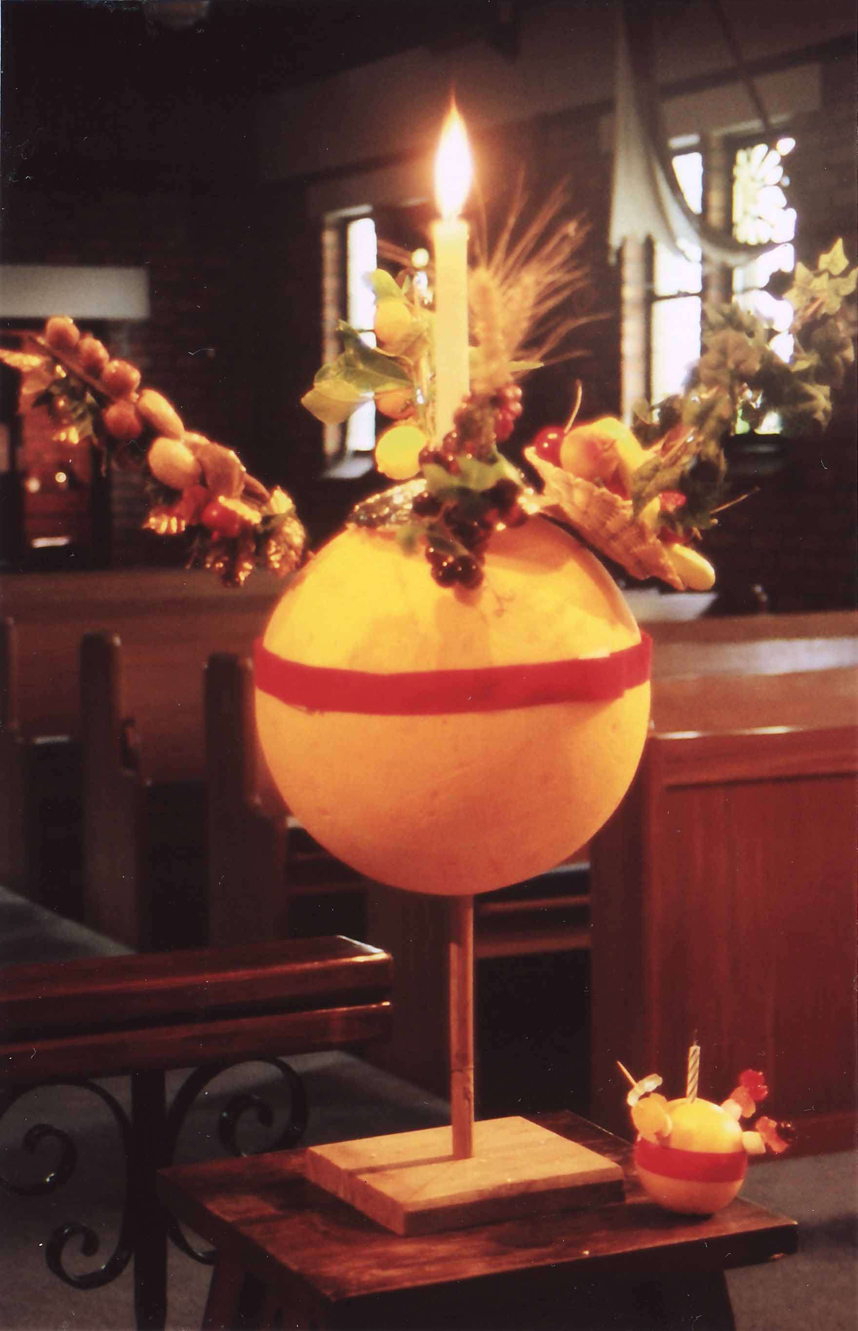 Just in case, the picture on the right is a photograph of the demonstration Christingle in action, and it also shows a real Christingle to demonstrate the scale.