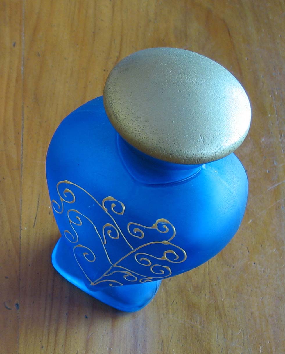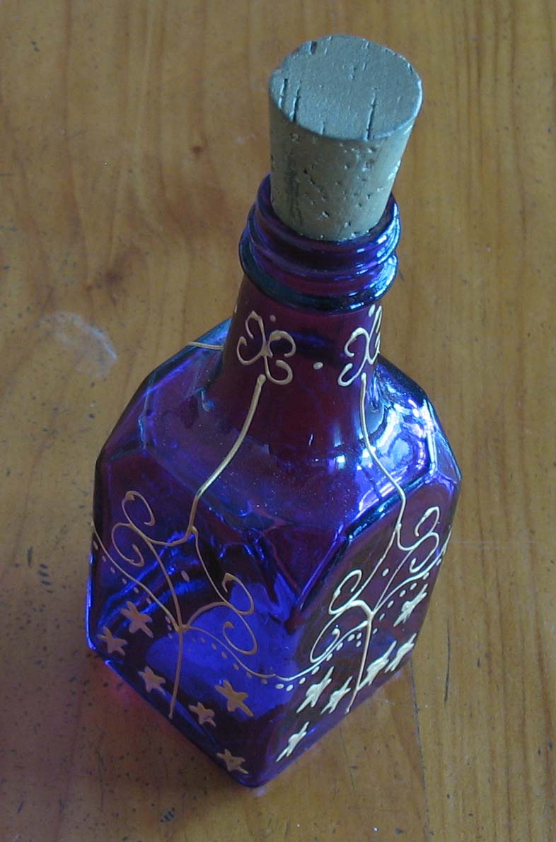 Well, not really, but after a few years of wondering what to do about the Christmas gifts we made ourselves a set of ( slightly ) impressive containers which we've used since. Our original set included a box for the gold, a jar for the frankincense, and a bottle for the myrrh, all prettied up with gold, blue, and purple paint - these are the first three items in the set of pictures below.